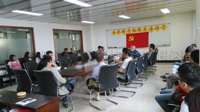 “万紫千红映党徽,七一光辉暖人心”。2015年7月1日,公司党委在公司六楼会议室召开了“纪念建党94周年座谈会”。公司党委书记沈波立,公司党委副书记、董事长王力明,公司党委委员、总建筑师胡东祥,公司副总经理宋放等领导、各部门负责人、全体党员、入党积极分子及退休支部特邀代表参加了座谈会。座谈会由公司党委委员、副总经理、工会主席、二支部书记邹继青主持。
